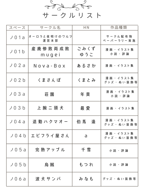 (パンフレットのMAP上にはサークル位置を記載できない可能性がございます)