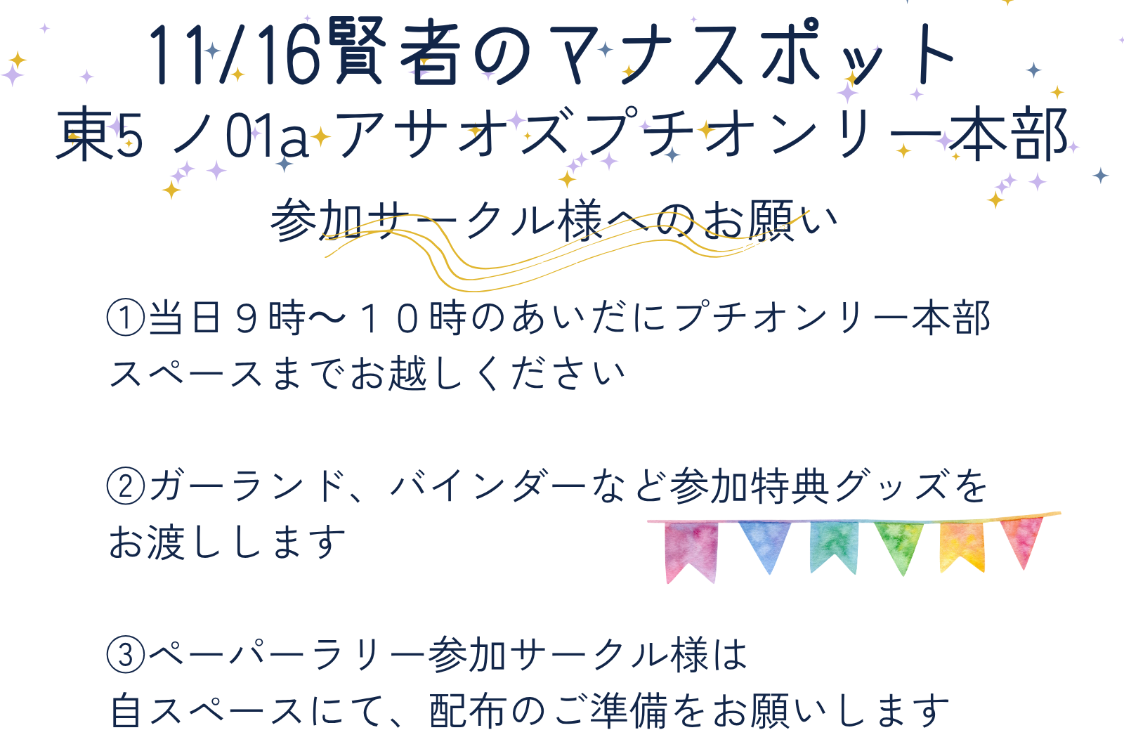 当日、まほやく以外のジャンルでサークル参加申し込みされる場合にも当プチへの参加が可能です。